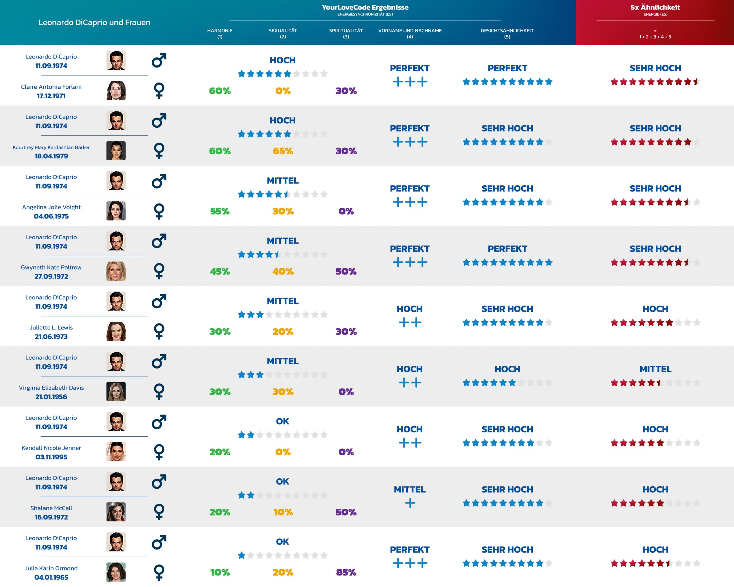 Wir haben Tausende von Analysen durchgeführt und wissen, dass unser Tool funktioniert! Träumst Du von großer Liebe? Nutze unser Tool und finde heraus, wer am besten zu Dir passt! Du erfährst den Star der zu Dir passt in unserem kostenlosen SPIEL.